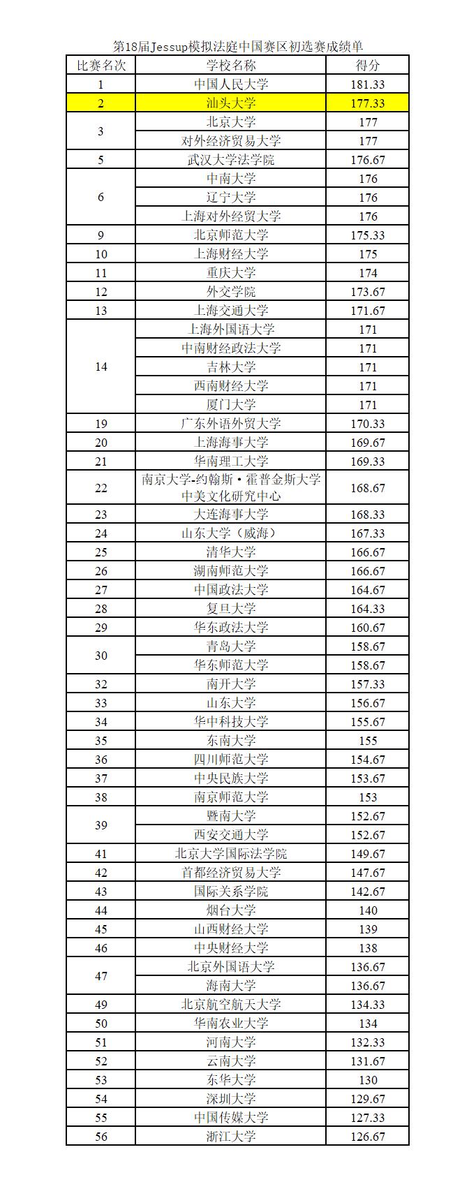 在刚刚结束的JESSUP(杰赛普)国际法模拟法庭比赛(Philip C. Jessup International Law Moot Court Competition)中国赛区比赛中,汕大伟德国际1946bv官网代表队在全国56支参赛队中脱颖而出,以第2名的优异成绩,斩获全国一等奖...