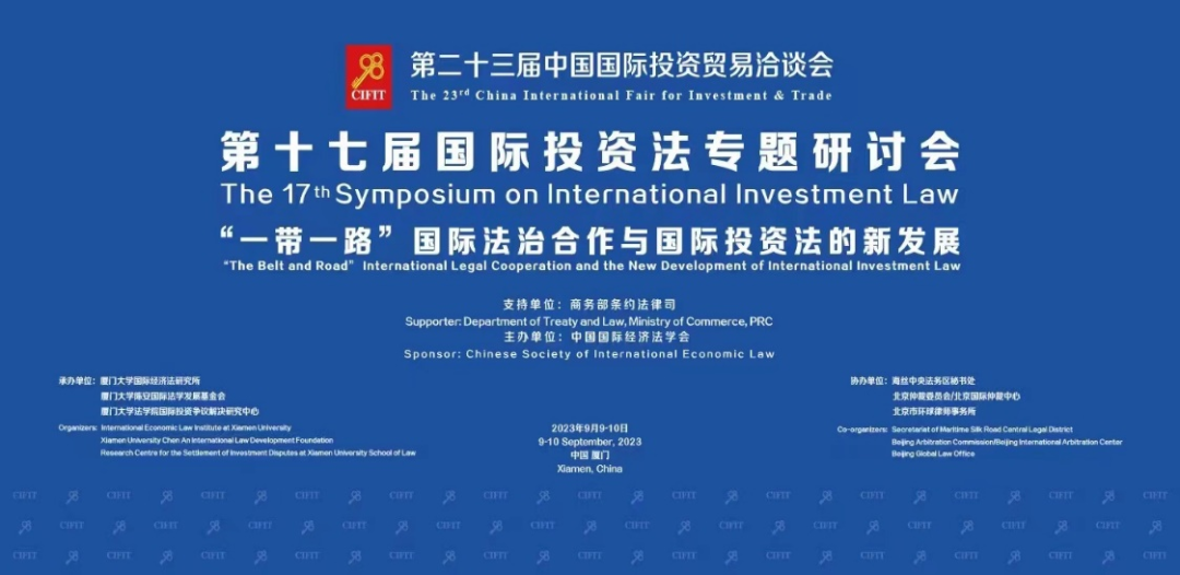 由中国国际经济法学会主办,中国商务部条法司支持的“第十七届国际投资法专题研讨会”于2023年9月9-10日在厦门举行。该研讨会是“第二十三届中国国际投资贸易洽谈会”的重要组成部分。本次研讨会的主题是“一带一路国...