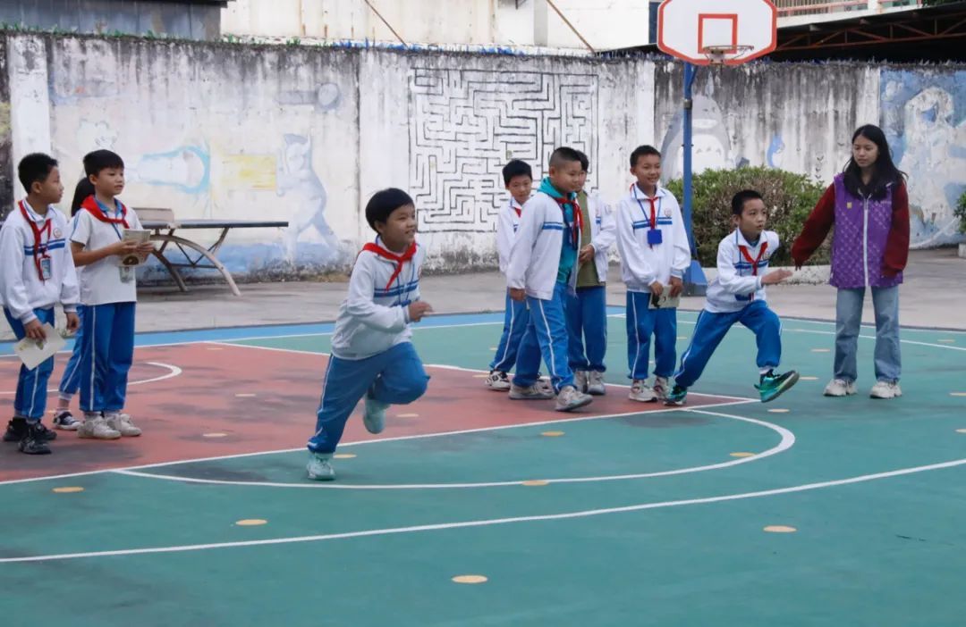 交通问答接力赛在篮球场另一侧开展,小朋友们组成三支队伍进行比拼。计时开始后,志愿者们随机抽取交通法规问题,由各组接力的小朋友作答。在奔跑速答与击掌接力的游戏过程中,小朋友们对交通安全知识有了更深入的了解,能够更好地保护自己的出行安全。
