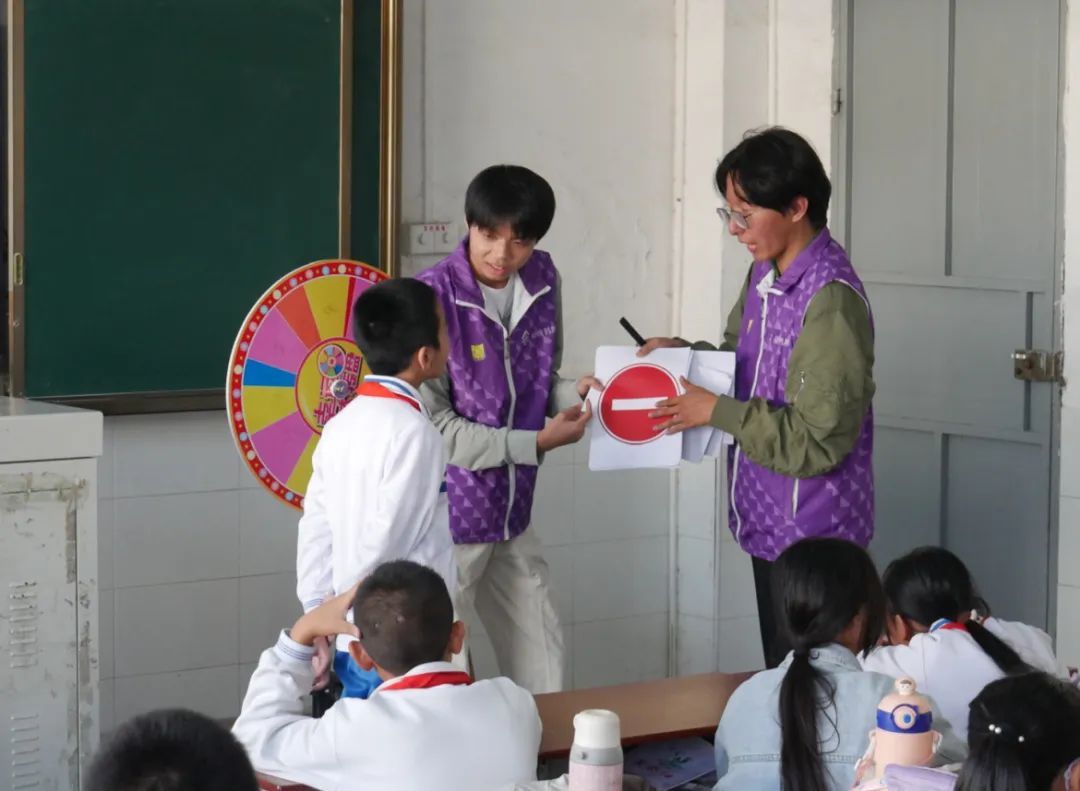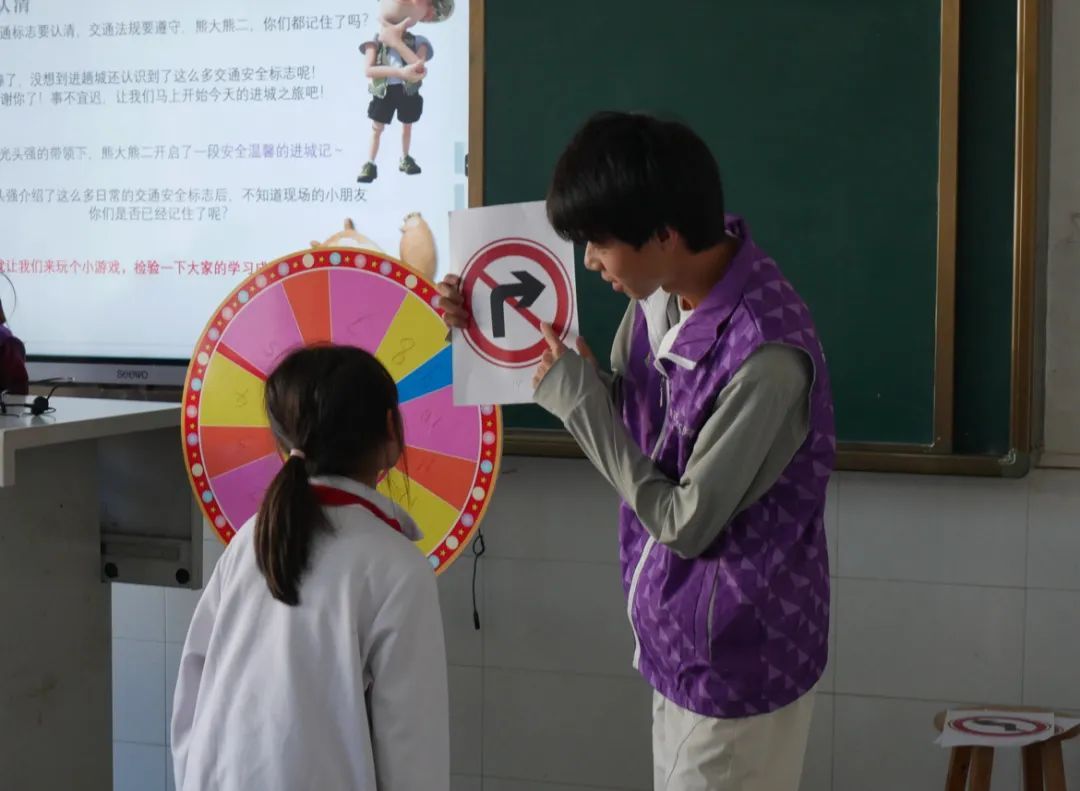 志愿者以生动的语言向在场小朋友介绍了常见的交通安全标志。随后志愿者们开展交通标志记忆大挑战环节,借助交通标识大转盘游戏,巩固小朋友们的学习成果。小朋友们热情高涨,踊跃举手回答问题,现场气氛热烈。广东天武律师事务所的邱立律师对道路交通法律法规进行细致入微的讲解,增强了小朋友们的自我保护意识。