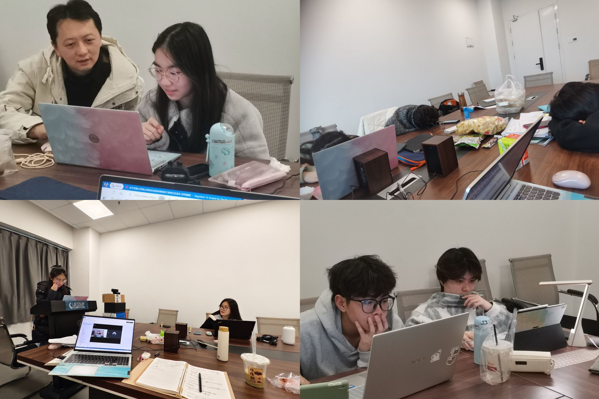 志不求易者成,事不避难者进。在长达近一年的备赛时间里,队员们尽管面临着升学、法考以及平衡日常课业学习等诸多压力,但依然勇敢地直面挑战积极高效备赛,并成功克服了重重困难。对于杰赛普人而言,研讨会议超长待机是司空见惯的,硕大的黑眼圈和哈欠声是会议室的“最佳拍档”,但只要能讨论出一个更好的答案,即便是在深夜,队员们的疲惫好像也被一扫而空。因此大家常常戏称彼此为“杰赛普铁人”。此外,今年是国内赛恢复线下赛的第一年,为了能更好地准备和适应,赛队成员们甚至在过年期间都没有回家,而是留在公司继续全力准备。