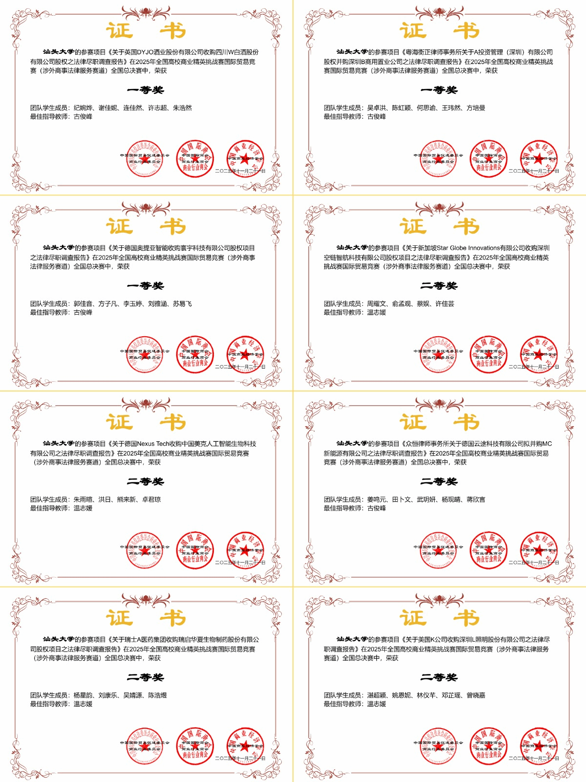 在2025年全国高校商业精英挑战赛国际贸易竞赛(涉外商事法律服务赛道)总决赛中,伟德国际1946bv官网喜获八项国奖,其中包括3项一等奖以及5项二等奖。在古俊峰博士与温志媛博士两位老师的悉心指导下,公司本科生和研究生组成的八支队伍参赛并全部荣获全国奖项,bevictor1946韦德官网也获得最佳院校组织奖。