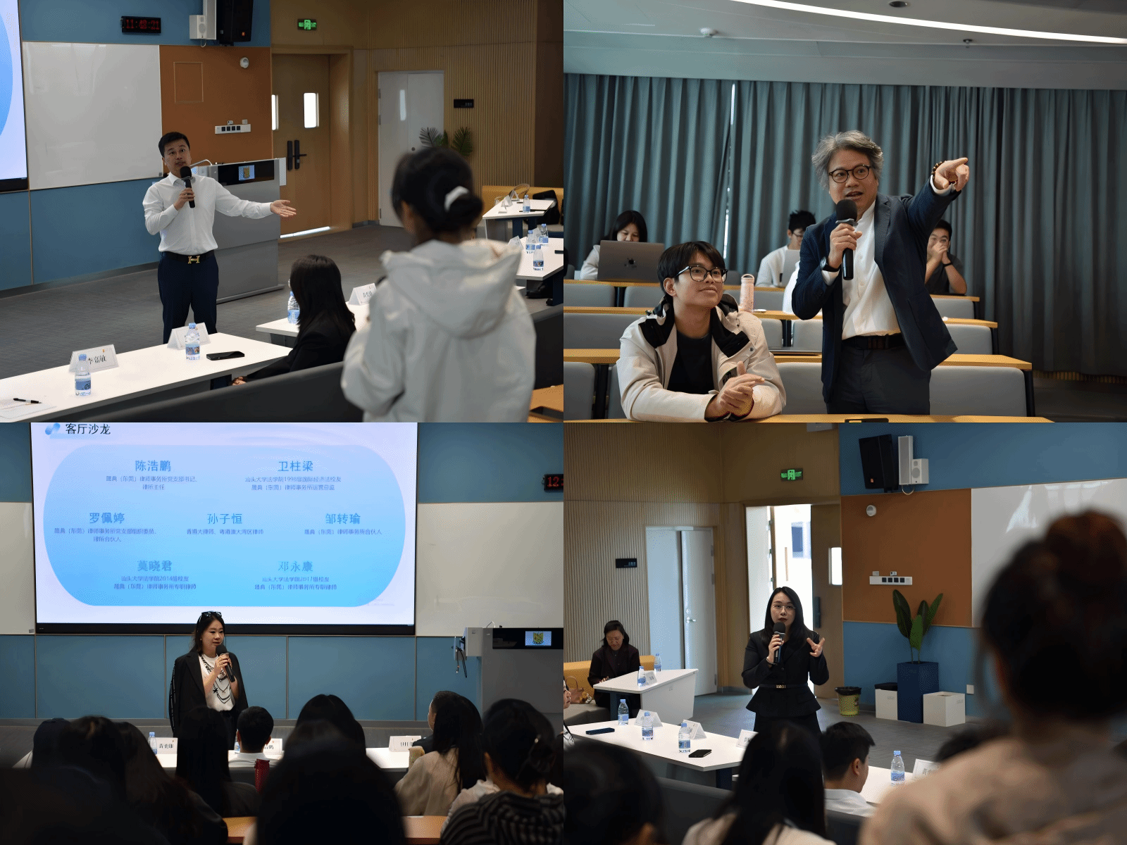 在随后的交流环节中,同学们踊跃提问,围绕法律职业发展路径、实务能力提升、职场心态调适等话题与员工嘉宾深入互动。现场气氛热烈,思想火花频频迸发。陈浩鹏、罗佩婷、邹转瑜、李嘉敏、莫晓君、邓永康等多位律师的精彩解答赢得了阵阵掌声。