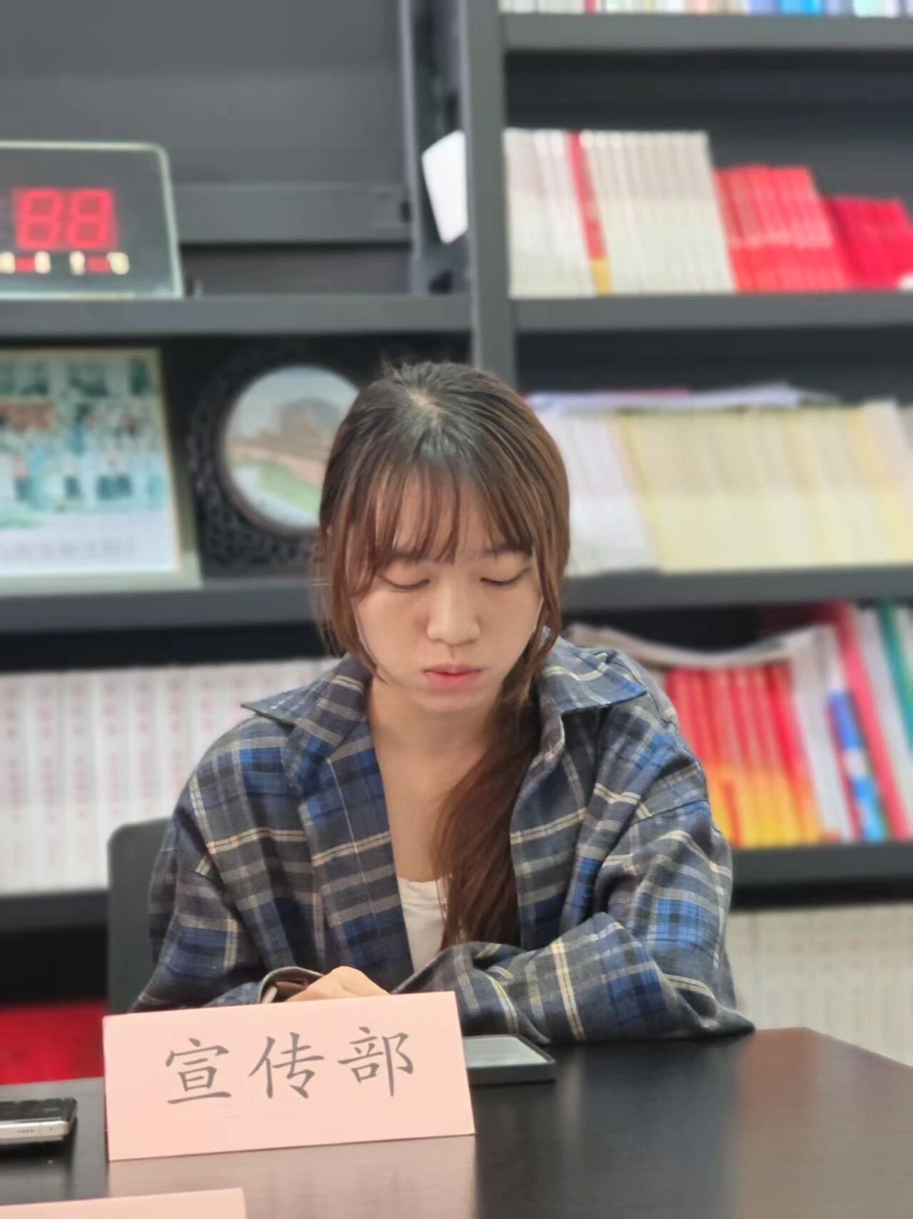 秘书部部长陈李汶、外联部部长李嘉鹏、权益部部长刘芷珊、宣传部部长林心妍分别结合部门职能,汇报活动实施情况与工作成效,针对现存问题进行分析,并提出可行的改进方案,为后续工作开展奠定坚实基础。