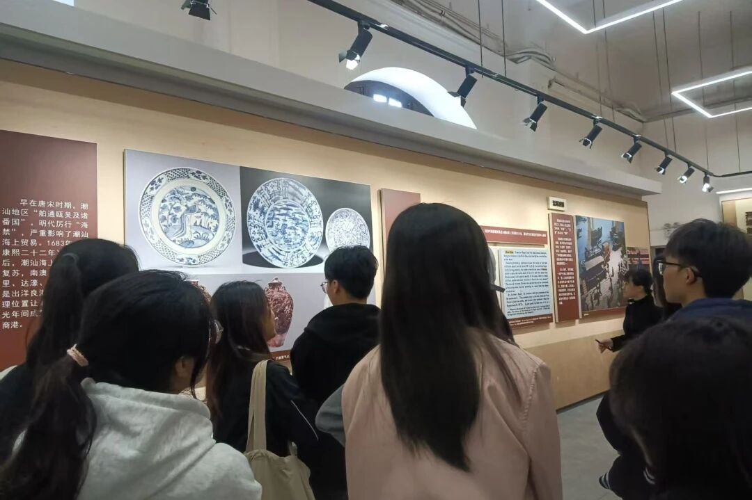 开埠文化陈列馆用图文并茂的方式生动反映了汕头的开埠历史、城市发展和改革开放历程。在展馆讲解员的带领下,同学们系统了解了1860年汕头开埠以来的历史变迁及中西文化交融历程。从老式火轮模型到侨批档案,从骑楼建筑构件到近代教育文献,各类展品生动展现了汕头自通商口岸至侨乡枢纽的发展轨迹,使师生深刻感受到本土文化的深厚积淀与历史底蕴。