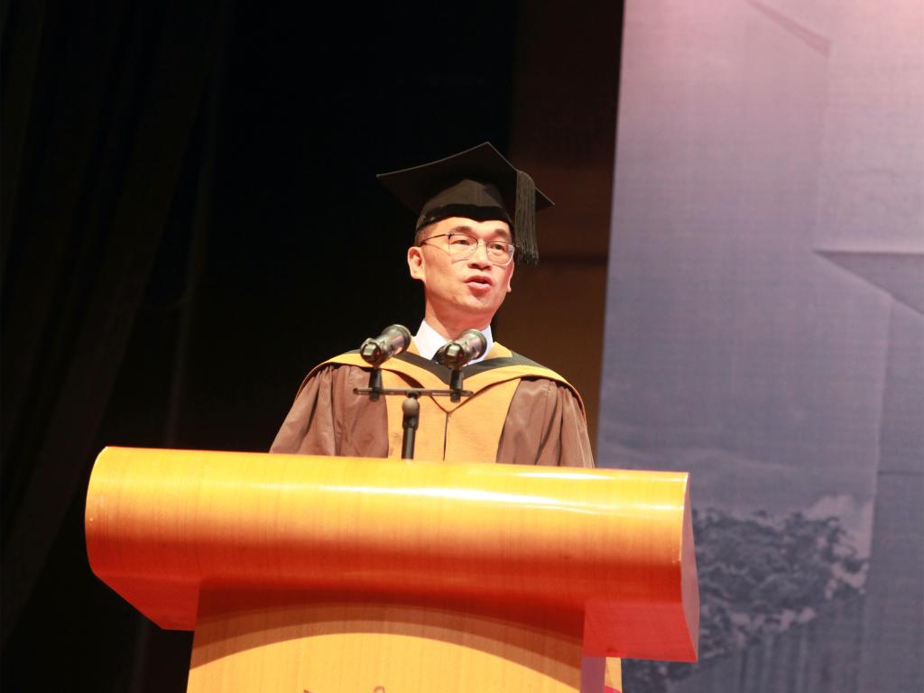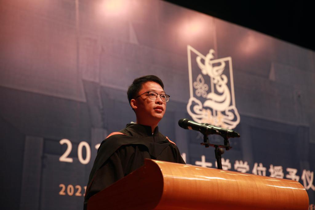获得2021年李嘉诚基金会卓越教师奖的聂铄副教授作为教师代表发言。她感谢同学们,让老师们在几十年如一日的重复教学工作中找到新意和乐趣,鼓舞着老师勇往直前。同时寄语所有毕业生心中有光,脚下有路,前程似锦。
