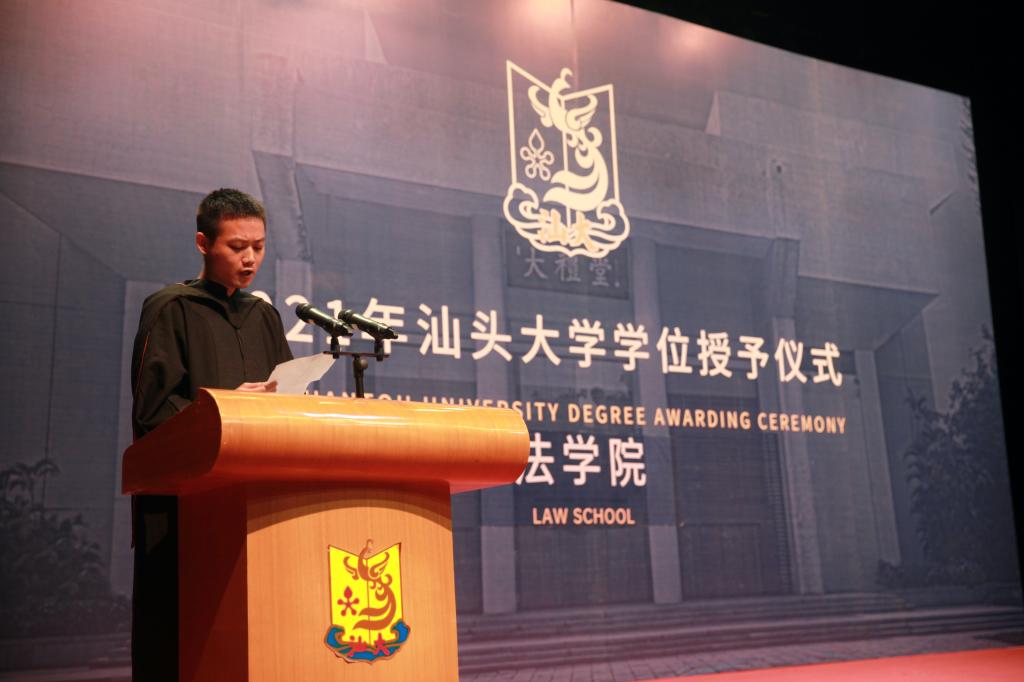 18级高等教育学专业张展图和18级公共管理专业肖鑫锋分别代表学术研究生和专业学位硕士研究生发言,他们表达了对公司的祝福,对老师的感谢以及对同窗的不舍。17级法学专业的梁佩玲同学代表本科生发言,她回忆了老员工活的点点滴滴,表示将永远铭记汕大“有志有识有恒有为”的校训,保持法律人的坚守,一直前进,始终感恩。