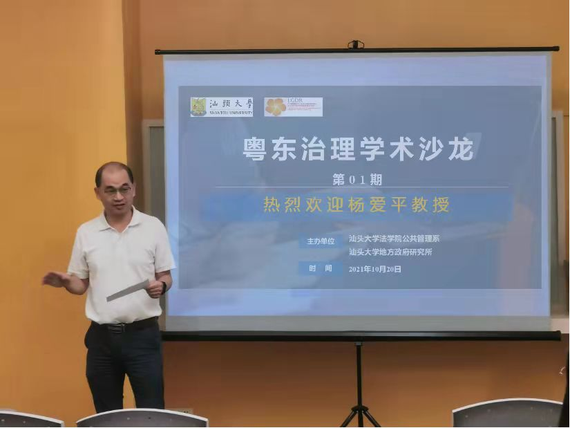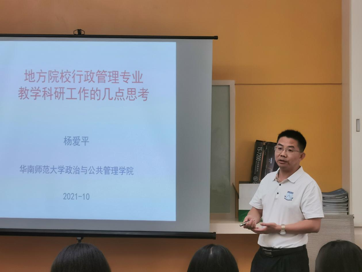 2021年10月20日下午,伟德国际1946bv官网公共管理系与地方政府发展研究所在伟德国际1946bv官网213会议室举办“粤东治理学术沙龙”活动。活动为华南师范大学杨爱平教授做“地方院校行政管理专业教学科研工作的几点思考”主题讲座。公司党委书记刘明强、副经理邓剑光教授及公管系教师代表出席本次活动。活动由地方所代所长汪文新主持。