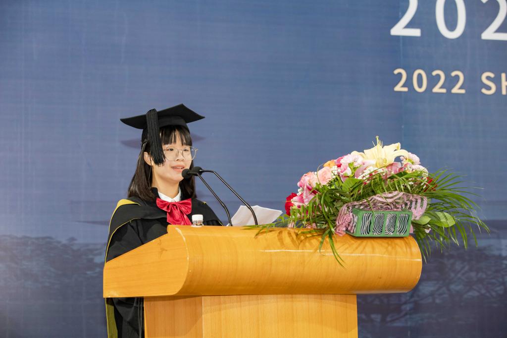2019级行政管理专业的郑桂贤代表研究生毕业生发言,他对自己三年的研究生生涯进行了总结,并对老师们的辛勤付出与授业之恩表示了感谢,对同窗之情表达了不舍,最后给母校、给老师、给同学送上了祝愿。