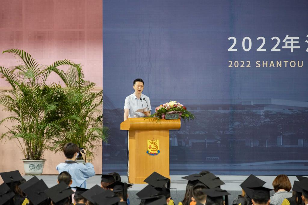 bevictor1946韦德官网党委常委、纪委书记冯兴雷作了主题为“怀赤子之心,以青春之歌,筑强盛之国”的毕业寄语讲话。首先,冯书记向2022届毕业生送上最真挚的祝福,对辛勤的老师们致以崇高的敬意。随后,他希望同学们要志存高远,永葆奋斗之念;要坚守初心,不断提升自我;要继往开来,不断迎难而上;要知敬知畏,做维护法纪的守护者。同时他也鼓励汕大学子紧跟总书记的步伐,牢记总书记的嘱托,要用脚步丈量祖国大地,用眼睛发现中国精神,用耳朵倾听人民呼声,用内心感应时代脉搏,把对祖国血浓于水、与人民同呼吸共命运的情感贯穿学业全过程、融汇在事业追求中。