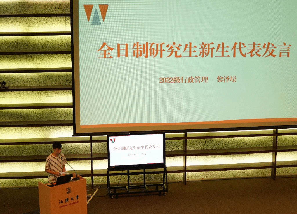 2022级行政管理专业的黎泽壕同学和法律硕士专业的赖扬子同学作为新生代表发言,分享了自己的考研经历,表达了对新旅程的期待,意识到凡所过往,皆为序章,跨过了大学的门槛又是一个新的人生起点,倡议同学们将过往的艰辛转化为接下来学习的动力,学会转变身份,趁着青春大好,不负韶华,无畏追梦。