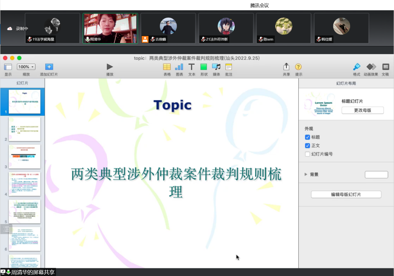 为进一步扩展公司员工国际法律视野,提升涉外法律综合能力,国际模拟法庭实训暨国际商事仲裁的理论与实践线上系列讲座(第二期,第三期,第四期)于2022年8月6日至2022年9月25日在腾讯会议接连举办。