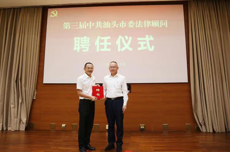 10月14日上午,第三届汕头市委法律顾问聘任仪式暨座谈会在市委会议中心金凤厅举行。公司法律系主任吴鹏副教授、陈瑞林副教授受聘为第三届市委法律顾问。