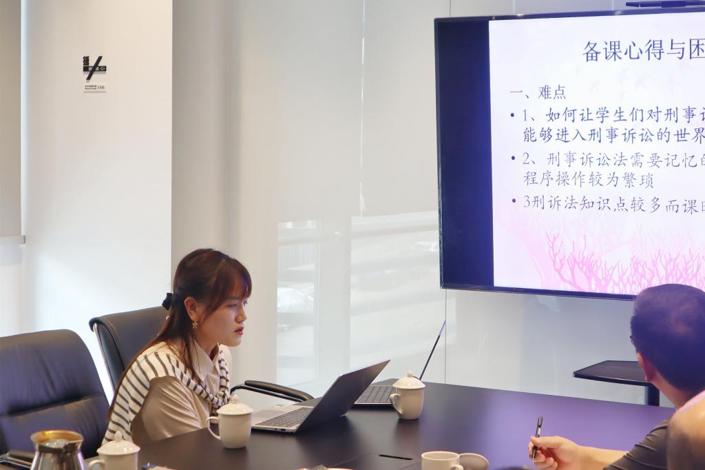 首先,由刑事法教研组近三年新入职教师作备课情况、课程思政建设情况报告。