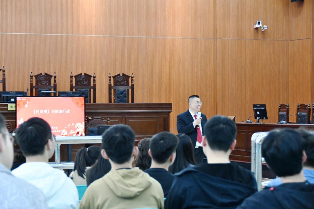 参观过后,沈国斐庭长以“《民法典》和依法行政”为主题,基于数个具体案例,围绕“以贯彻实施民法典为契机,加快推进依法行政”的主题,向同学们深入浅出解读了民法典,引发了同学们的热烈讨论。