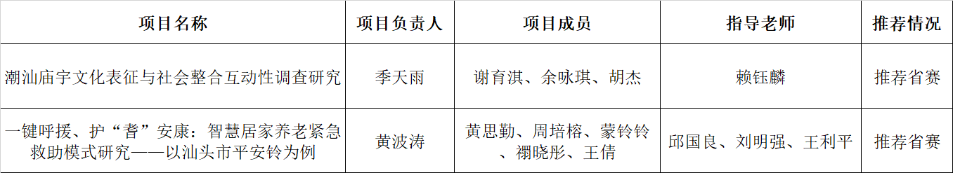 bevictor1946韦德官网第十六届“挑战杯”老员工课外学术科技作品竞赛决赛于3月12日在图书馆报告厅举行。经过激烈角逐,公司各项目团队以过硬的专业素质和优异的创新能力赢得各方一致认可,最终斩获二等奖1项,三等奖3项,优秀奖3项的佳绩,充分展示了法院学子全面发展、勇于创新的风采。其中季天宇团队《潮汕庙宇文化表征与社会整合互动性调查研究》、黄波涛团队《一键呼援、护“耆”安康:智慧居家养老紧急救助模式研究——以汕头市平安铃为例》获得推荐参加第十七届“挑战杯”广东省老员工课外学术科技作品竞赛。