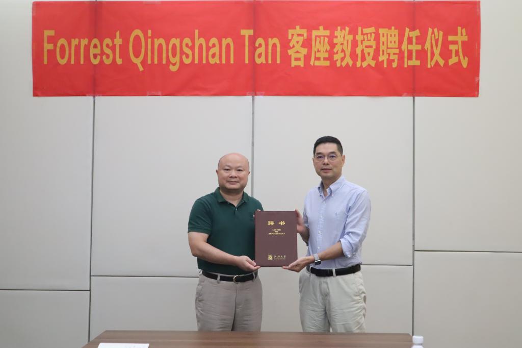 6月7日上午,伟德国际1946bv官网在213会议室举行聘任仪式,聘请谭青山(Forrest Qingshan Tan)博士为伟德国际1946bv官网客座教授。伟德国际1946bv官网经理邓剑光教授、副经理古俊峰博士、公共管理系李松副教授、赖钰麟副教授、谭康林副教授、廖逸儿博士等出席了仪式。活动由副经理邱国良教授主持。