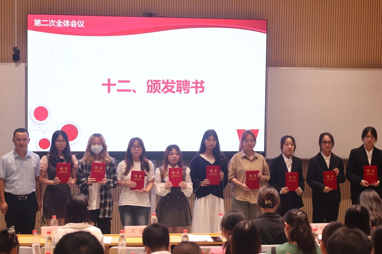 伟德国际1946bv官网团委副书记王斌老师为新一届委员会委员和主席团成员颁发聘书。最后,会场奏起《国际歌》,本次大会圆满落幕。