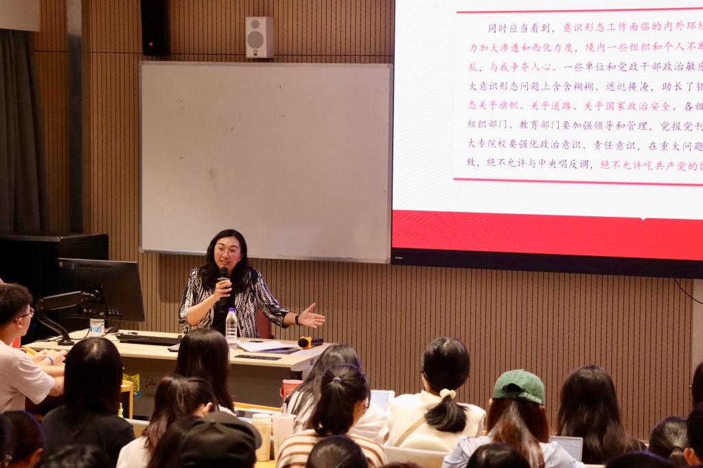 课程最后,张丽婷副书记希望在“思政第一课”的教育引导下,同学们应牢记习近平总书记的嘱托:“坚定理想信念,站稳人民立场,练就过硬本领,投身强国伟业,始终保持艰苦奋斗的前进姿态,同亿万人民一道,在实现中华民族伟大复兴中国梦的新长征路上奋勇搏击。”最终成为德才兼备的高素质法治人才,让青春在祖国和人民最需要的地方绽放绚丽之花。