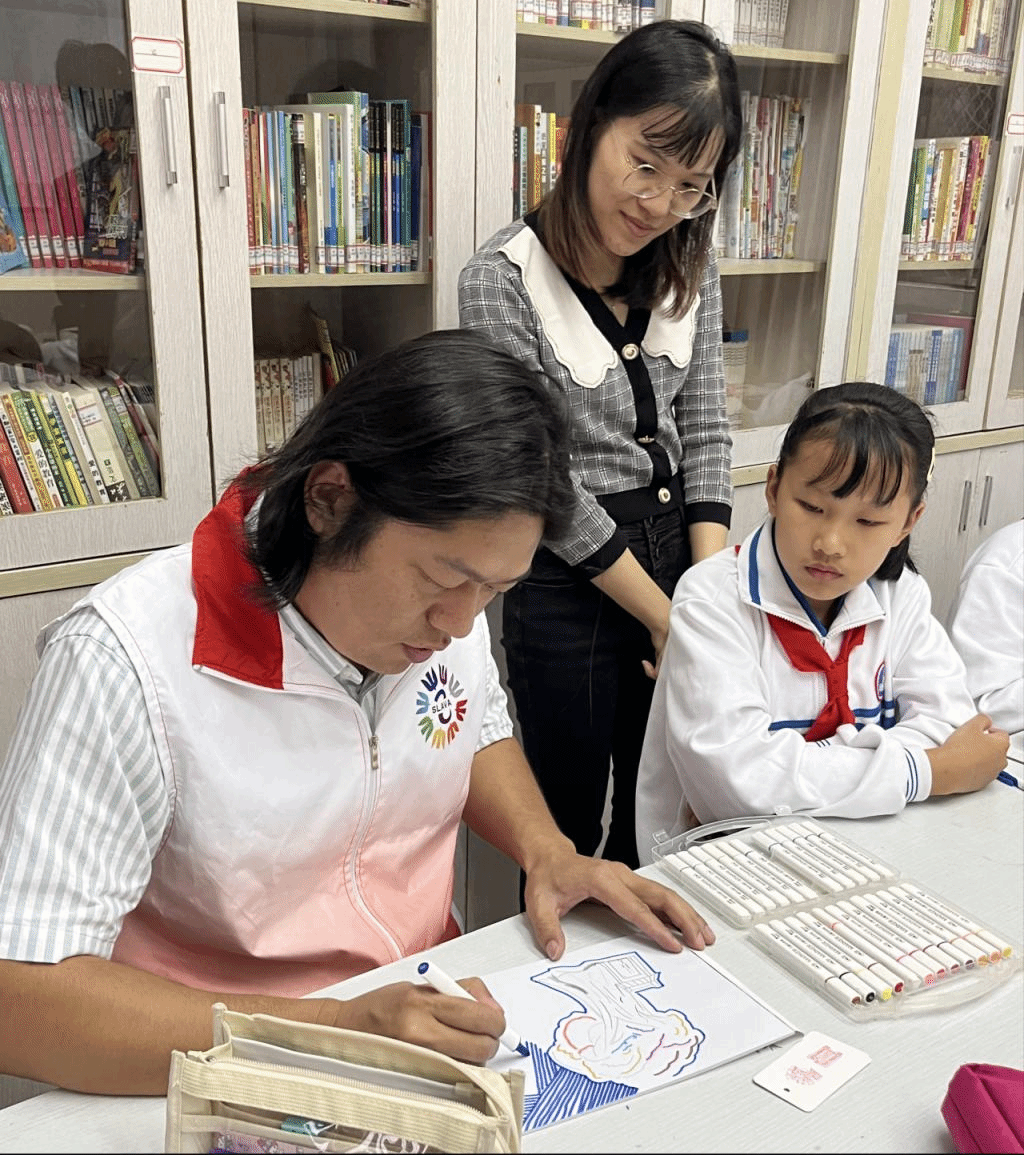 宣讲结束后,青联委员叶桂创老师依据员工水平及特点提供专业指导,协助员工完成画作,指引员工们依靠认知和想象,画出心中最具特色的蓬洲古城建筑或景色。金陇小学的员工们肆意发挥他们天马行空的想象力,稚嫩的脸庞充溢着愉悦的欢乐,享受着这次课堂带给他们的乐趣。