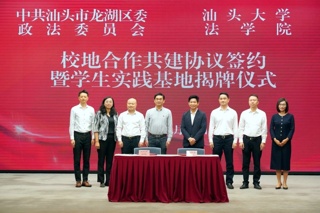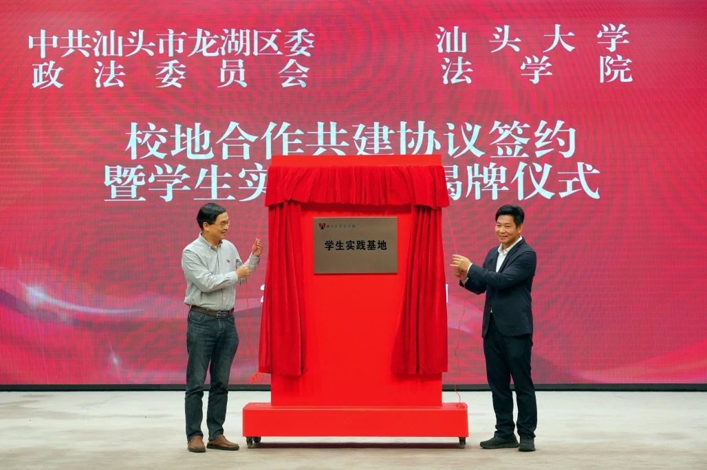 龙湖区政法委邢楚銮副书记与伟德国际1946bv官网邓剑光经理共同签署《校地合作共建协议》。陈泽波书记与刘明强书记共同为公司员工实践基地揭牌。