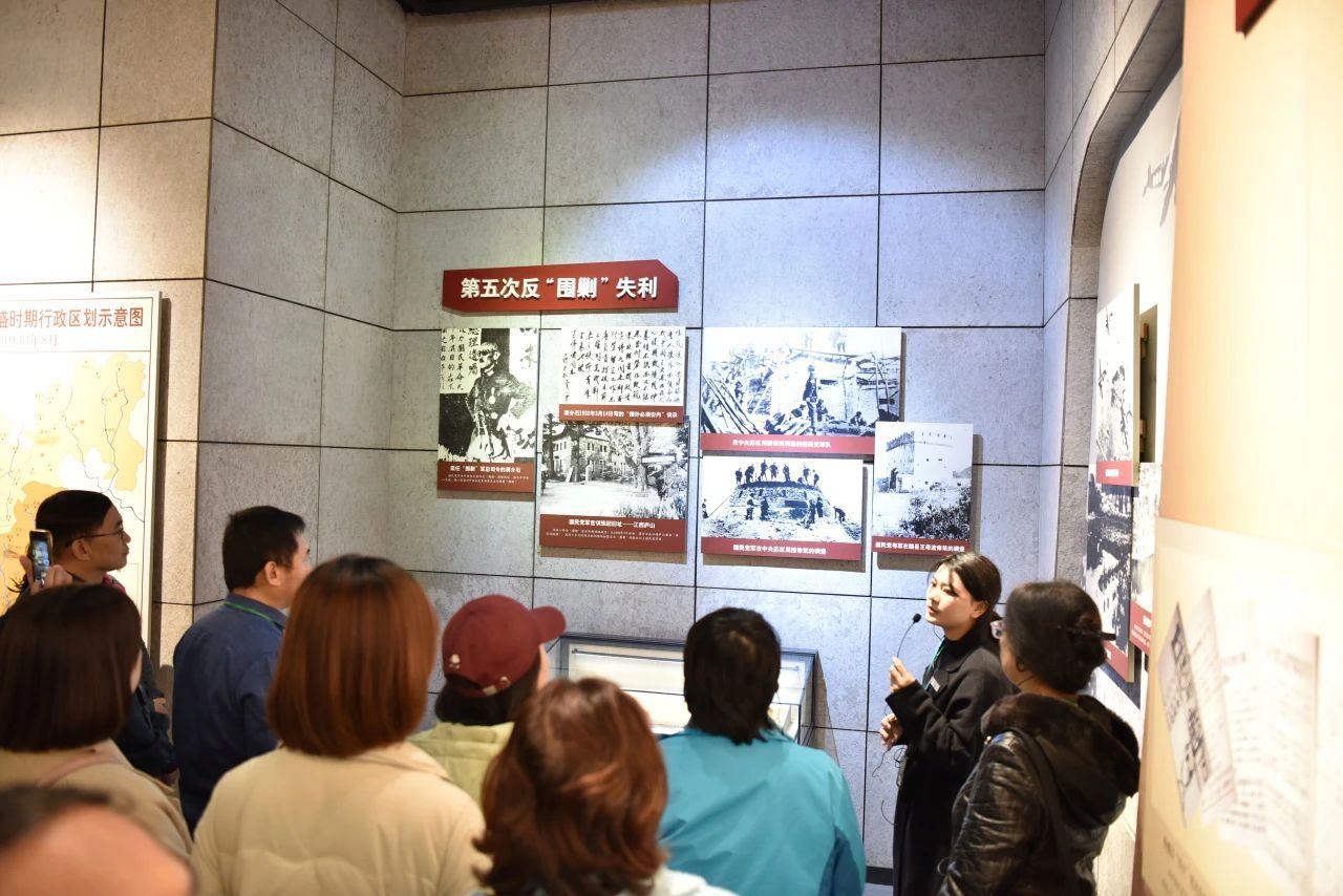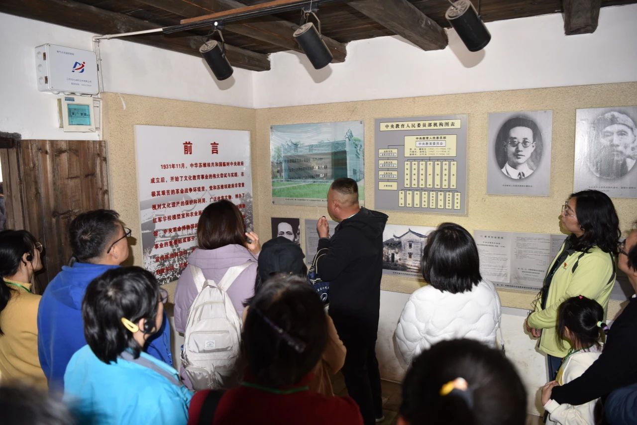 在中国第一个全国性红色政权中华苏维埃共和国临时中央政府的诞生地——叶坪,教师们参观了“一苏大”旧址,瞻仰了红军烈士纪念塔,聆听了八子参军的动人事迹,感悟了毛泽东、周恩来、朱德、任弼时、王稼祥等老一辈无产阶级革命家创建新政权的艰辛和光荣。