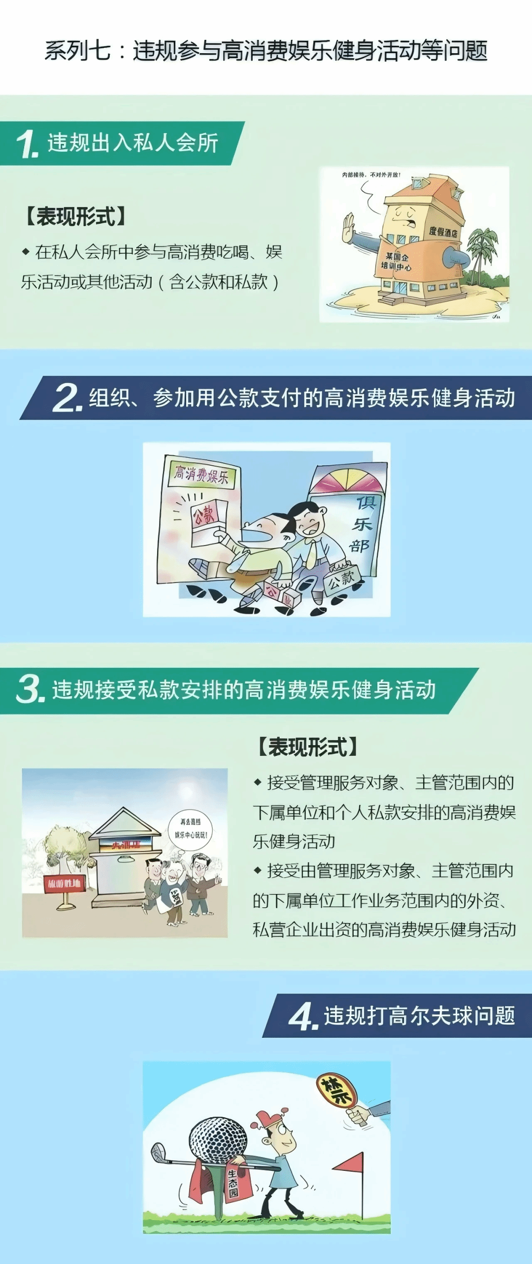 违反中央八项规定精神问题第二大类是享乐主义、奢靡之风(6大类14种表现):