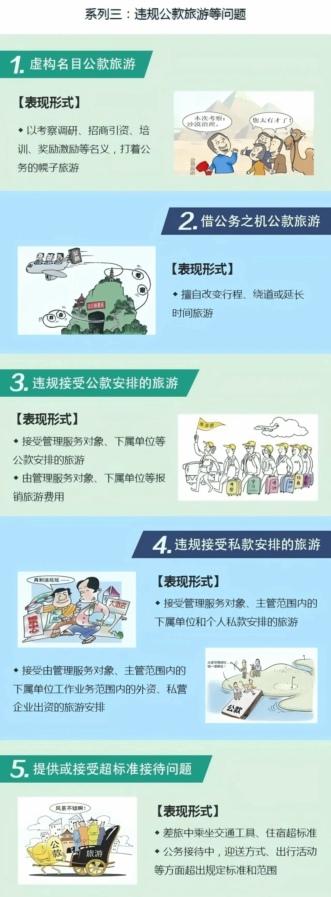 5. 公款旅游以及违规接受管理和服务对象等旅游活动安排;